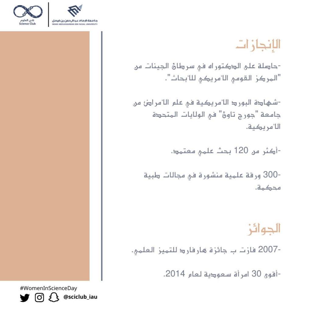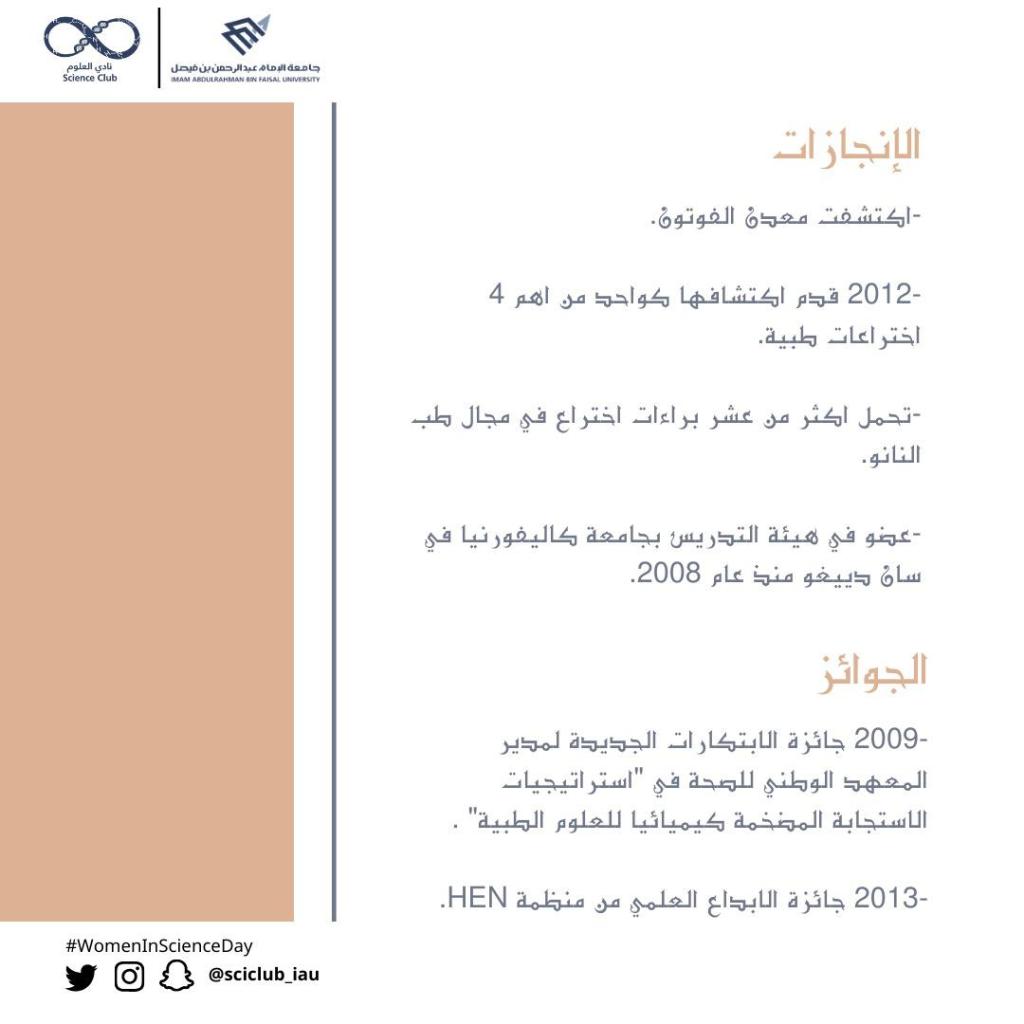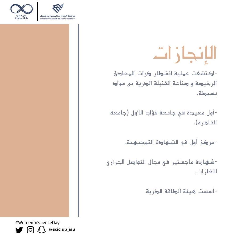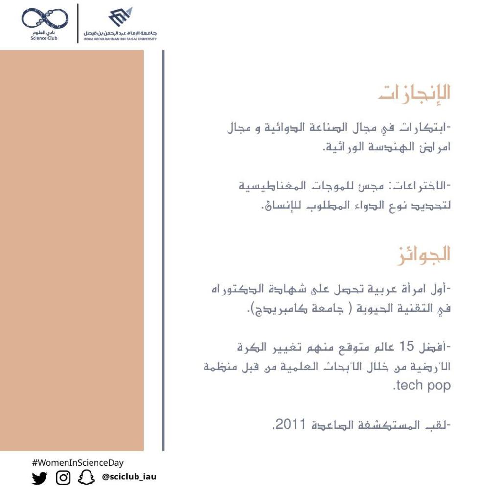 “عِلْم” هذه الكلمة المكوّنة من ٣ أحرف وتمتد أوصافها لبحر من المعاني، فهي المعرفة المُستمدَّة من حقائق قابلة للتكرار والإثبات، ويمكن تشبيهها بالبناء الذي يتمّ تشييده طابقًا إثر طابق، فكلّ عالم يبدأ من حيث انتهى مَن سبقه في المجال ذاته.العلم نشاط إنساني عالميّ أسهم في بنائه الشّعوب المختلفة، وهو يهدف إلى خدمة الإنسان أينما وُجِد، دون النّظر للشعب أو الدّولة التي ينتمي إليها.لماذا “اليوم العالمي للمرأة في مجالات العلوم”؟تمثل النساء نصف سكان العالم، وبالتالي نصف إمكانياته، ومع كل الأسف تتجنب النساء والفتيات المجالات ذات الصلة بالعلوم بسبب التحيزات النمطية الجنسانية القائمة منذ أمد بعيد. وكما هو الحال على أرض الواقع، فإن ما يُعرض على الشاشات يعكس تحيزات مماثلة حيث أظهرت دراسة عن التحيز الجنساني بلا حدود لعام 2015 التي أجراها معهد جينا ديفيس أن نسبة النساء في الشخصيات التي تظهر على الشاشة ولها وظائف في مجال العلوم والتكنولوجيا هي 12 في المائة وحسب. ولذا اعتمدت الجمعية العامة للأمم المتحدة القرار أن أعلنت 11/فبراير بوصفه يومًا دوليا للمرأة في مجالات العلوم “العلوم من التخصصات التعاونية ومع ذلك، فإن الفجوة بين الجنسين تقف حجرة عثرة أمام إحراز مزيد من التقدم في هذا الميدان، وبمناسبة هذا اليوم الدولي للمرأة والفتاة في ميدان العلوم، دعونا نتعهد بإنهاء عدم التوازن بين الجنسين في مجالات العلوم كافة.” كتبها أنطونيو غوتيريش.. كما في حديث آخر للأمين العام للأمم المتحدة : “نحن بحاجة إلى تشيع ودعم الفتيات والنساء على تحقيق قدراتهن كباحثات عالميات ومخترعات”.وهذا اليوم فرصة عظيمة لذكر وإبراز أهم إسهامات المرأة في مختلف مجالات العلوم: